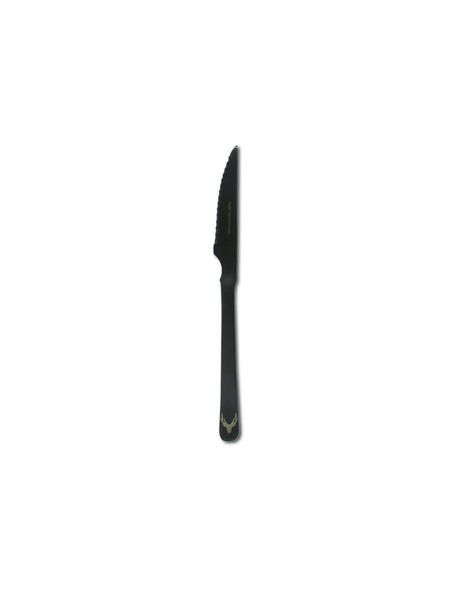 Couverts en inox 18/10 ionisé, couleur noir mat, motif tête de cerf L 23.5cm