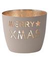 Madras, photophore, M avec motif Merry Xmas coloris grès/or. Hauteur 8.5cm x Ø 10cm