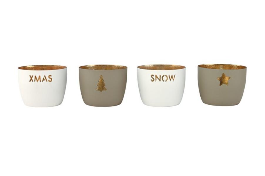 Madras, photophore, XS avec motifs noël set de 4 pèces coloris sandstone/blanc/or. Hauteur 4.5cm x Ø 5.7cm